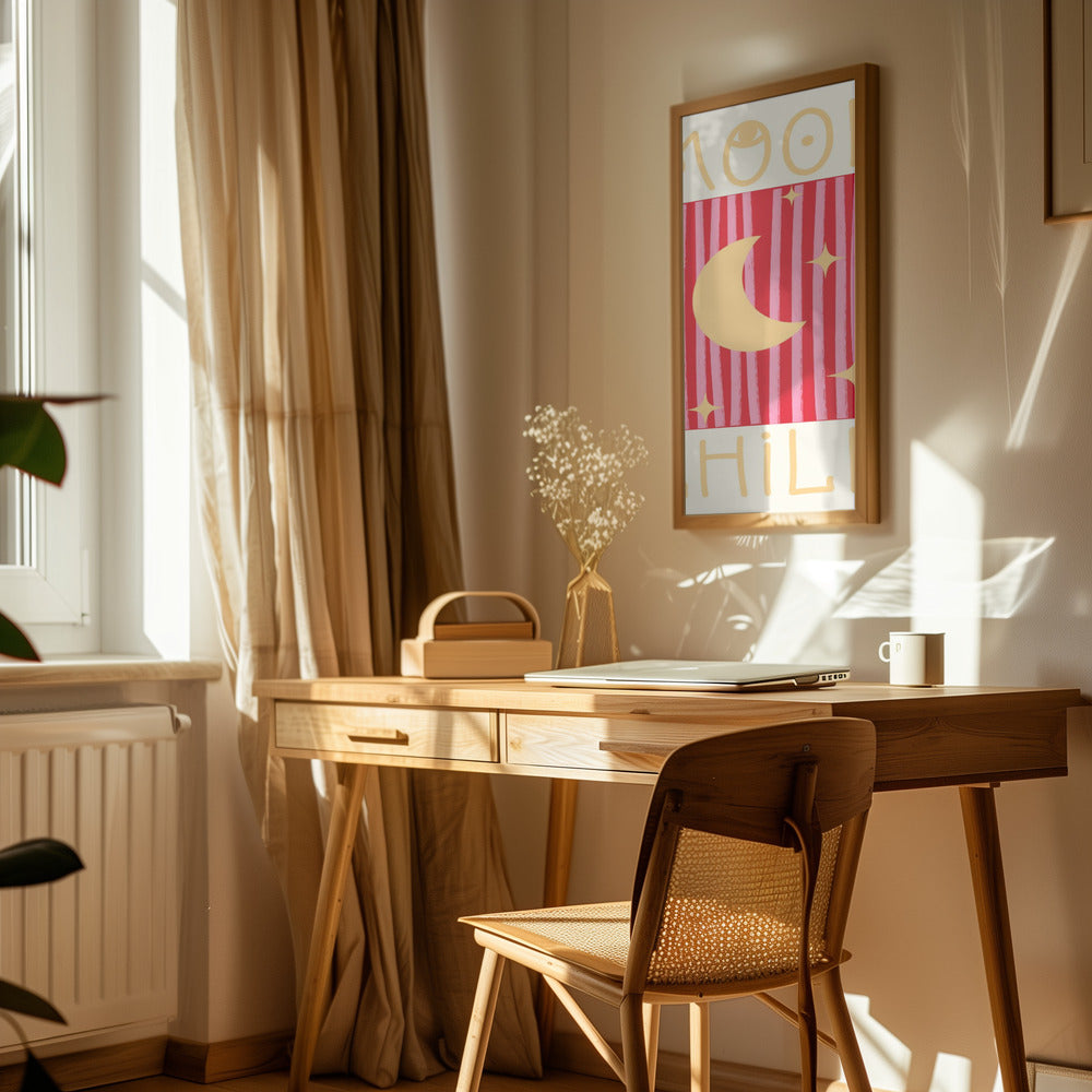 Pink and Red Moon Child Poster - 30x40 cm / 12x16″
