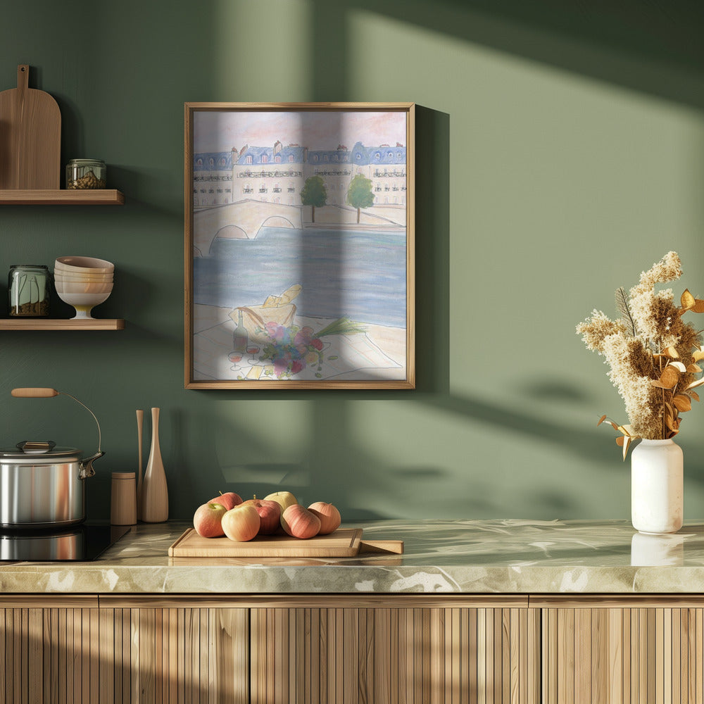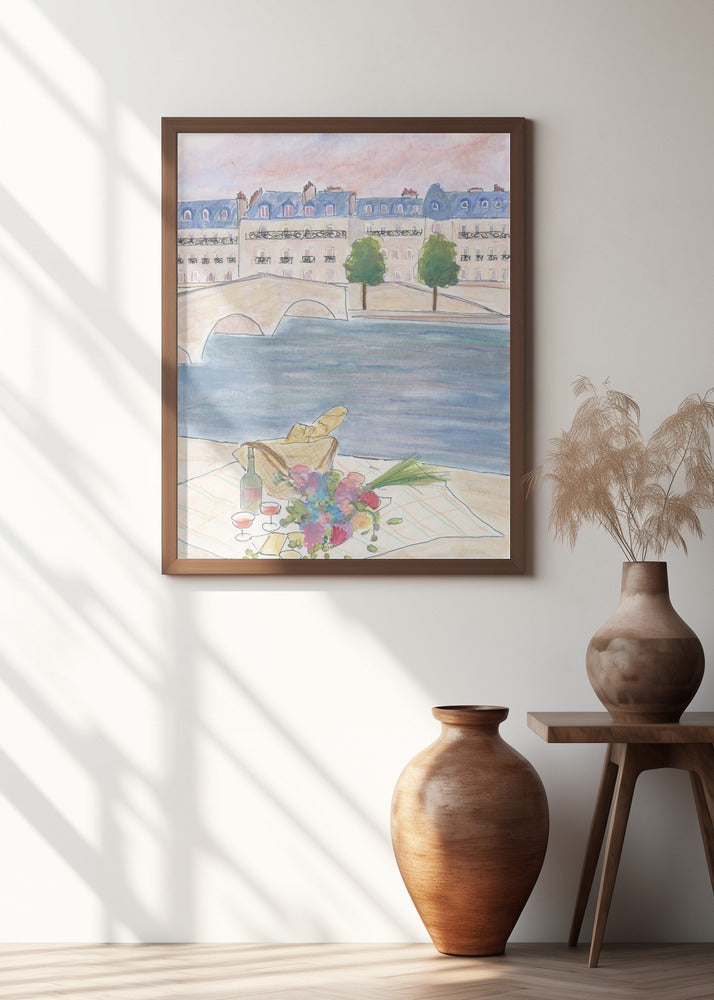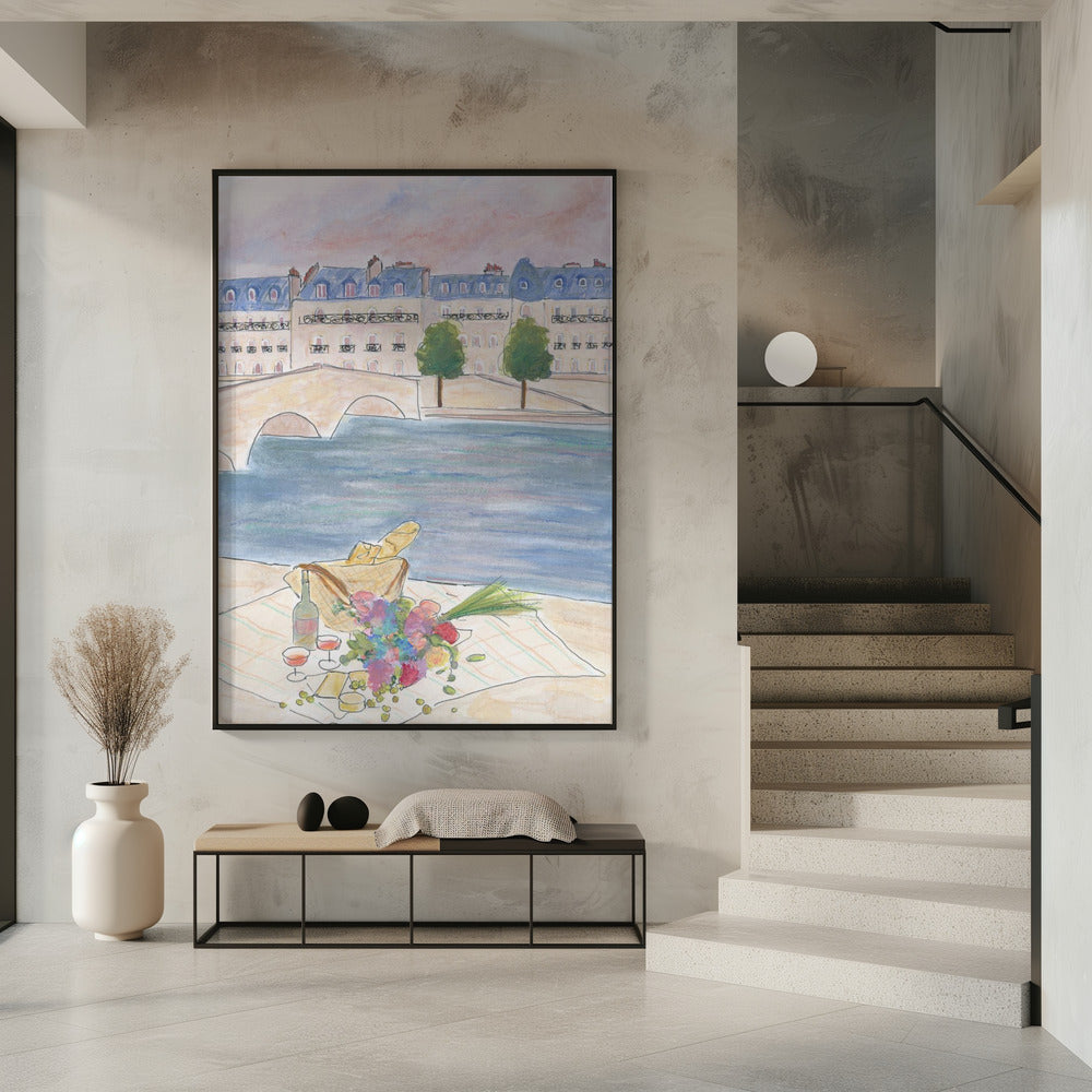Paris Picnic At the Seine Poster - 30x40 cm / 12x16″