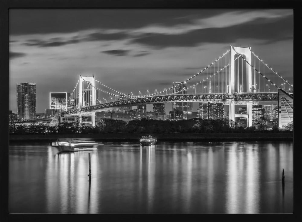 Gorgeous Rainbow Bridge and Tokyo Skyline at sunset - monochrome panorama Poster - 40x30 cm / 16x12″