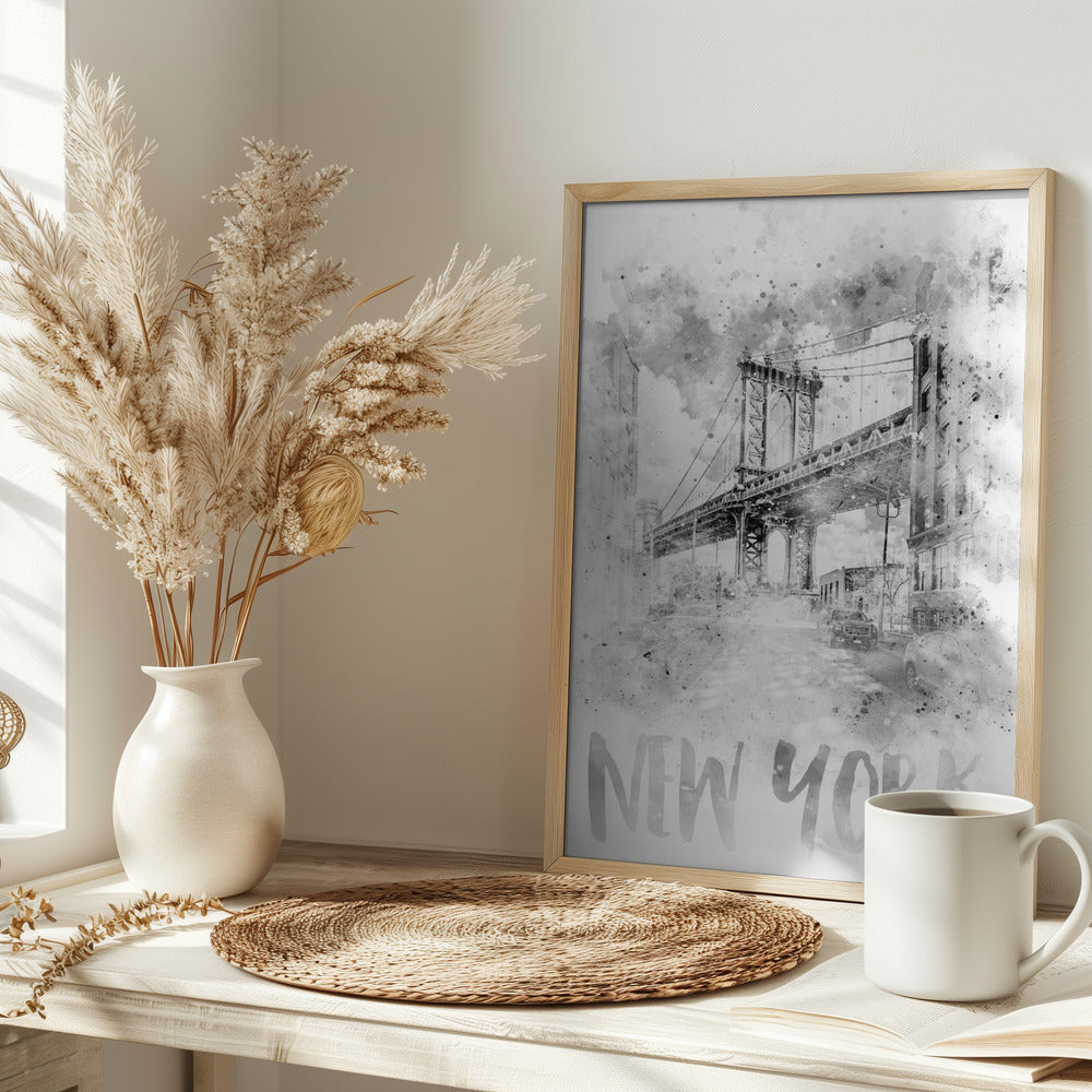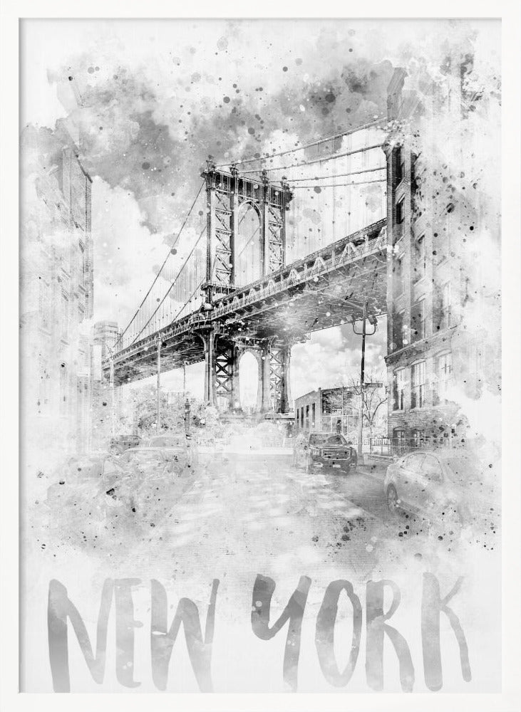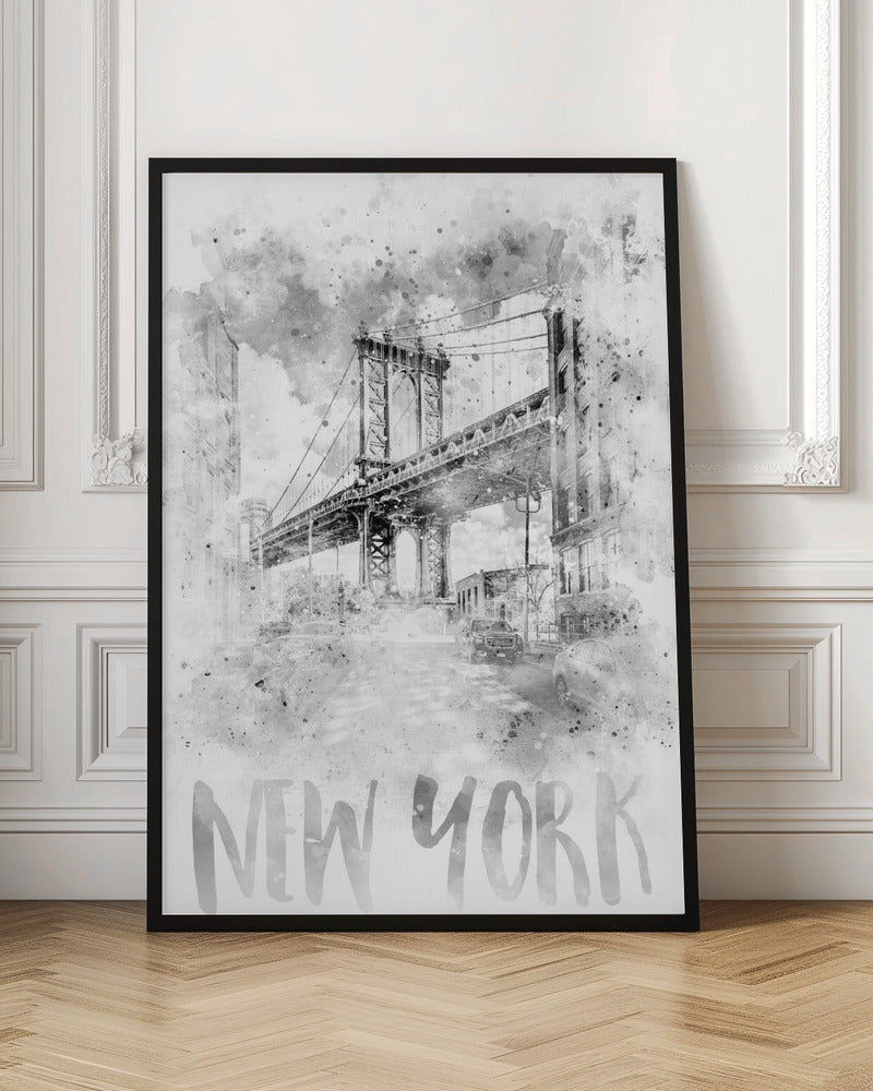 A unique and selected poster called "Monochrome Art NYC Manhattan Bridge | watercolor" from one of Globefellas partner artist by the name Melanie Viola. This poster will look perfect in your home interior and bring life to your walls. A part of Globefellas collection of carefully selected art posters.