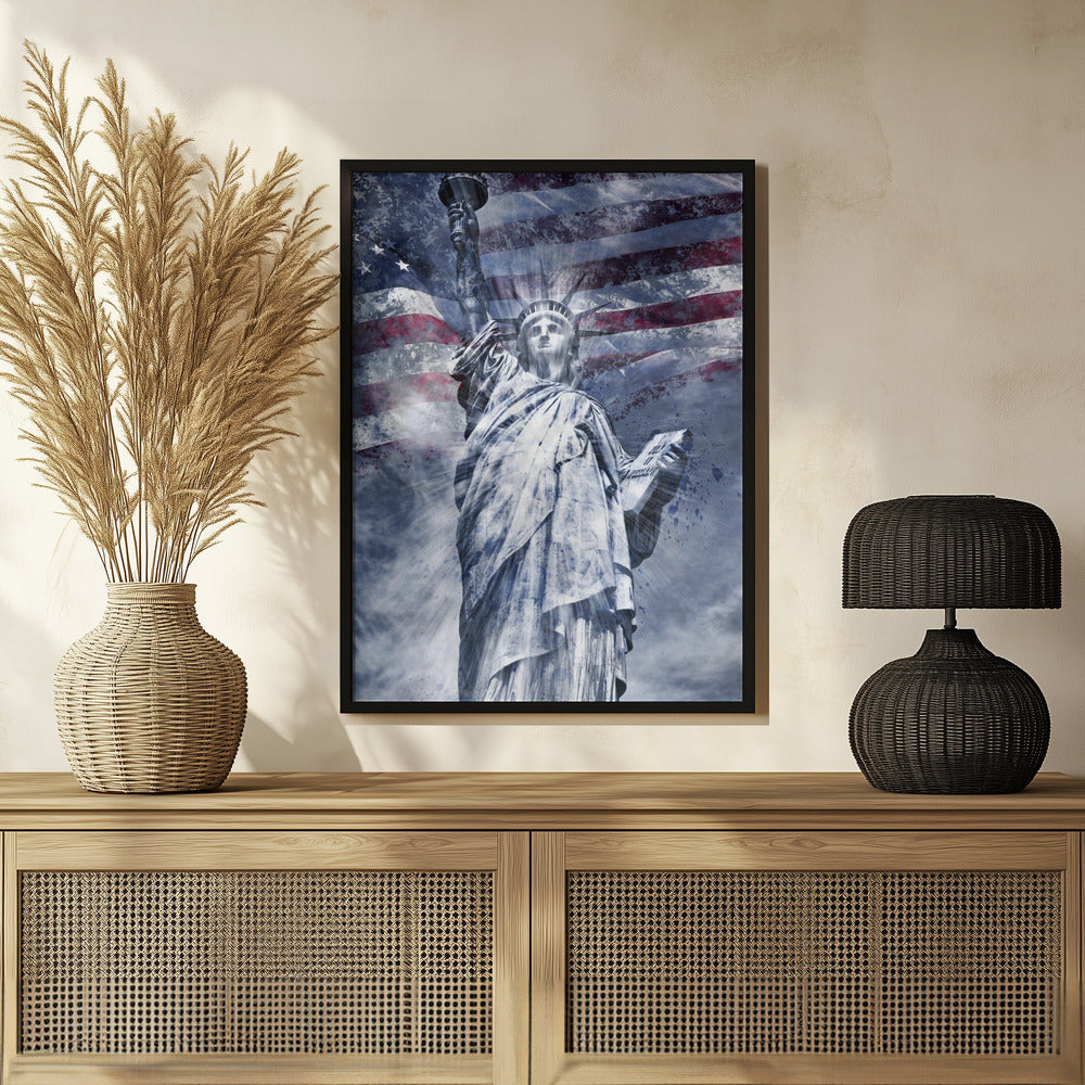 Modern Art STATUE OF LIBERTY | blue Poster