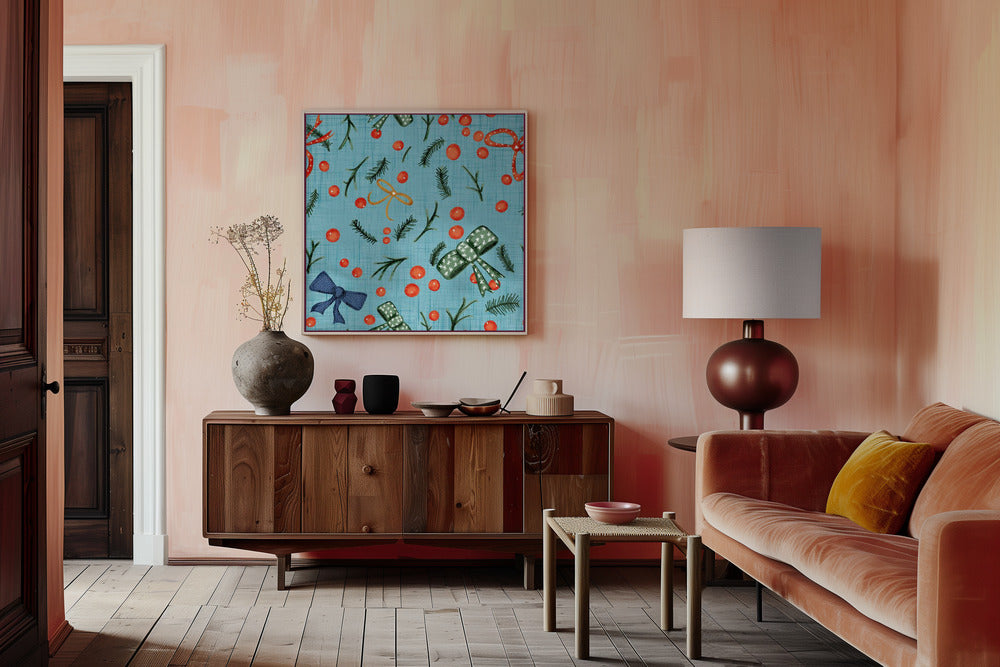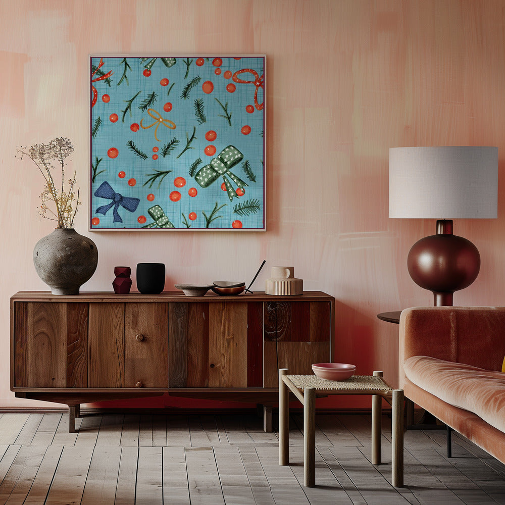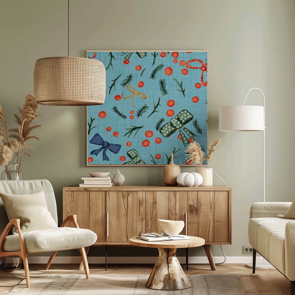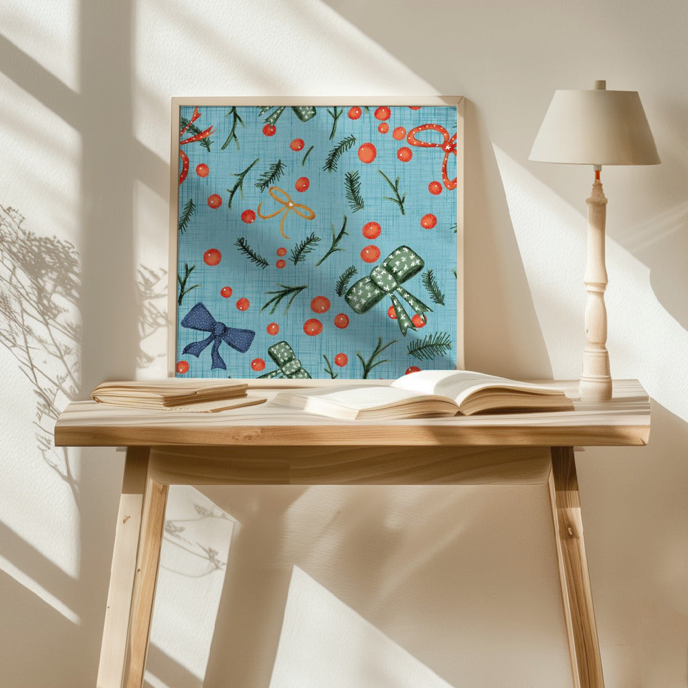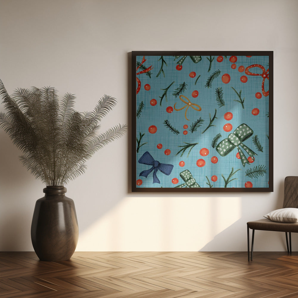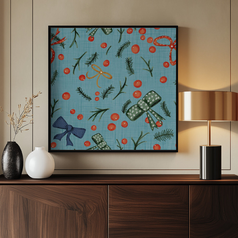 Moody Yuletide Holiday Bows and Berries Baby Blue Poster - 50x50 cm / 20x20″